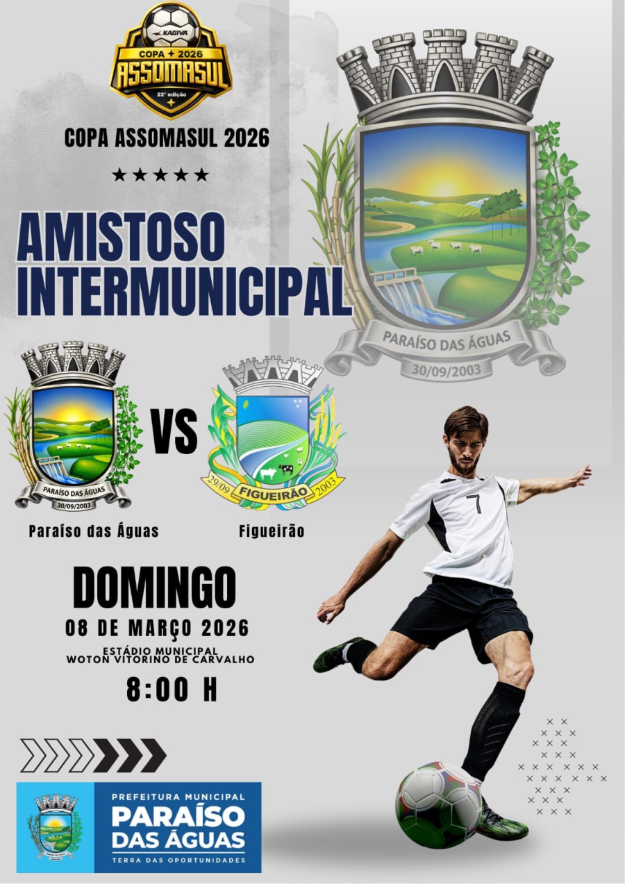 por Fernando Brito As seleções de servidores municipais de Paraíso das Águas e Figueirão entram em campo no próximo domingo, dia 8 de março de 2026, para um amistoso intermunicipal preparatório com foco na Copa Assomasul 2026, considerada a maior competição…