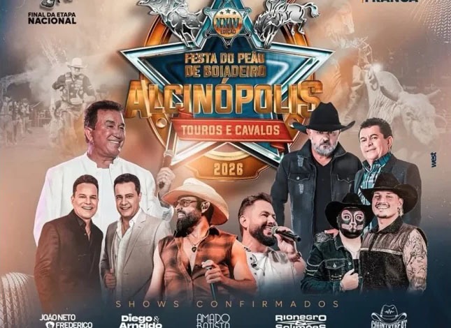 ALCINÓPOLIS (MS) – O clima de rodeio já toma conta das ruas de Alcinópolis. Faltam apenas dois dias para o início da Festa do Peão de Boiadeiro 2026, um dos eventos mais tradicionais e aguardados da região norte do estado. Entre os dias 17 e 21 de abril, o Sindicato Rural será o palco de uma programação que une esporte, música e cultura sertaneja.