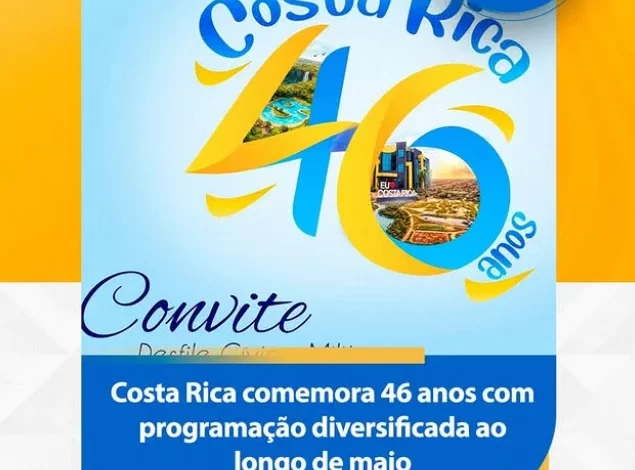 Maio é o mês de festa para a população costarriquense! Para celebrar o aniversário de emancipação político-administrativa de Costa Rica, a Prefeitura Municipal preparou um calendário repleto de atividades que unem cultura, entregas de obras, técnica agropecuária e o tradicional civismo.