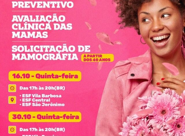 A Saúde municipal reforça que o diagnóstico precoce é crucial para aumentar as chances de cura. A todas as mulheres, o convite é para “olhar para você com mais atenção, realize os exames preventivos e incentive outras mulheres a fazerem o mesmo.”