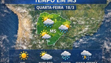 A mínima em Campo Grande é de 21°C e a máxima de 31°C. Em Dourados, o dia inicia com 19°C e chega aos 32°C nos horários mais quentes. Na fronteira com o Paraguai, Ponta Porã apresenta variação entre 20°C e 28°C. Anaurilândia, na região Leste, tem mínima de 19°C e máxima de 32°C.