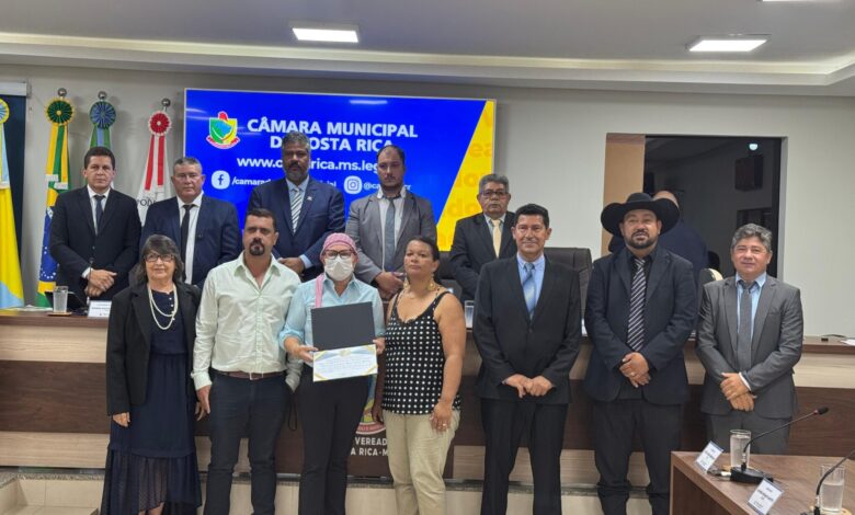Durante a 7ª Sessão Ordinária, realizada na segunda-feira, 16 de março de 2026, a Câmara Municipal de Costa Rica entregou a Moção de Congratulação e Apoio nº 08/2025. A honraria, de autoria da vereadora Rosângela Marçal Paes, reconhece a postura democrática e a união dos professores da Rede Municipal de Ensino na busca pela revisão da legislação do abono natalino.