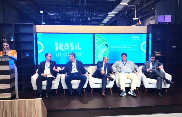 Na sexta-feira (1º), a programação sul-mato-grossense na COP 28 iniciou com a participação do secretário Jaime Verruck no Painel de Governança Multinível para o fortalecimento da integração climática nacional. O painel é organizado pela ABEMA e terá como moderadora a Gerente Geral de Mudanças Climáticas da Secretaria de Meio Ambiente, Sustentabilidade e Fernando de Noronha, Samanta Della Bella.