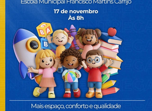 Costa Rica, MS – A Prefeitura Municipal de Costa Rica, por meio da Secretaria Municipal de Educação (Semed), realizará na próxima segunda-feira, 17 de novembro de 2025, às 8h, a cerimônia de inauguração da ampliação da Escola Francisco Martins Carrijo. O evento, que acontece no bairro Jardim São Francisco, marca um avanço significativo para a educação local.