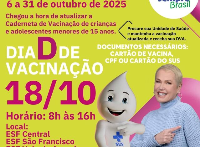 A Prefeitura de Costa Rica, por meio da Secretaria Municipal de Saúde (SM), realizará neste sábado, 18 de outubro, o Dia D da Campanha de Multivacinação 2025. O objetivo da mobilização nacional é atualizar as cadernetas de vacinação de crianças e adolescentes menores de 15 anos (até 14 anos, 11 meses e 29 dias).