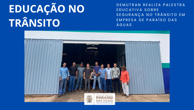 O Departamento Municipal de Trânsito (DEMUTRAN) de Paraíso das Águas realizou uma palestra educativa sobre segurança no trânsito na empresa Paracar Mecânica Auto Peças e Serviços de Guincho. A ação teve como foco a conscientização dos colaboradores.