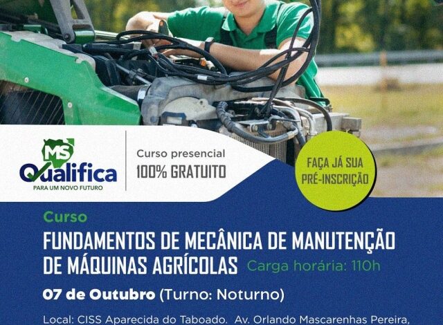 O programa MS Qualifica está oferecendo uma excelente oportunidade de qualificação profissional 100% gratuita com a abertura de inscrições para cursos presenciais em Aparecida do Taboado. As formações são focadas em áreas de alta demanda no mercado local, com início das aulas previsto para 7 de outubro.