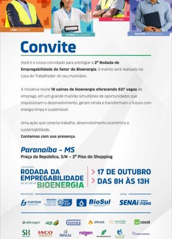 A Casa do Trabalhador de Paranaíba sediará na próxima sexta-feira, dia 17, um grande mutirão de empregos que combina a 2ª Rodada de Empregabilidade do Setor de Bioenergia e o Feirão de Vagas da Usina Cedro – Pedra Agroindustrial S/A.