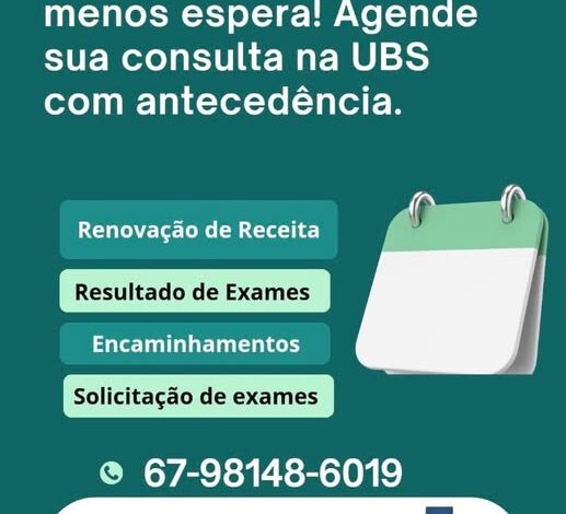 O que muda na prática? A medida visa organizar a casa e garantir eficiência. O paciente não deve ir à unidade sem antes ligar ou marcar. A regra do agendamento vale para serviços essenciais do dia a dia, incluindo: