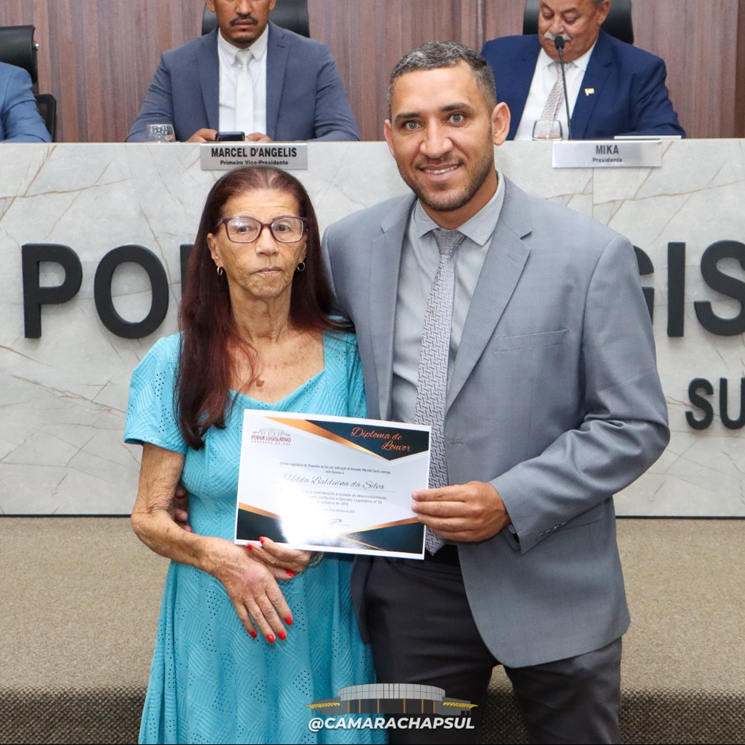 Durante a solenidade, cada vereador indicou um homenageado, que recebeu reconhecimento público pelos relevantes serviços e contribuições prestadas à comunidade.