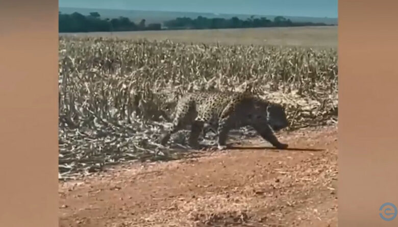 Imagem dramática: Onça-pintada foge de incêndio no Parque Estadual Nascentes do Taquari