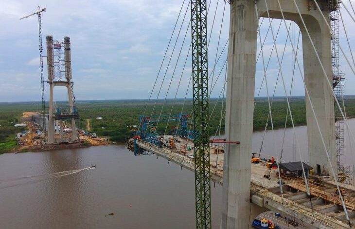 A principal obra da estrada que ligará o Brasil ao Chile já tem 80% dos trabalhos concluídos. Mais de 400 trabalhadores atuam no canteiro de obras, que deve ser finalizado até o primeiro semestre de 2026. Construída entre Porto Murtinho e a paraguaia Carmelo Peralta, a ponte é executada por consórcio binacional, com investimento de R$ 575,5 milhões (US$ 93 milhões), financiado pela administração paraguaia da Itaipu.