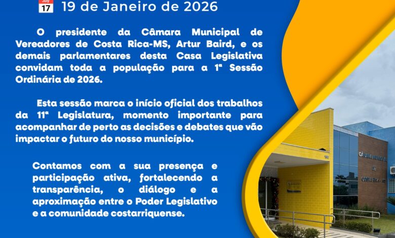 Terminado o recesso parlamentar, a política volta a aquecer em Costa Rica. A Câmara Municipal realiza na próxima segunda-feira, 19 de janeiro, a 1ª Sessão Ordinária de 2026.