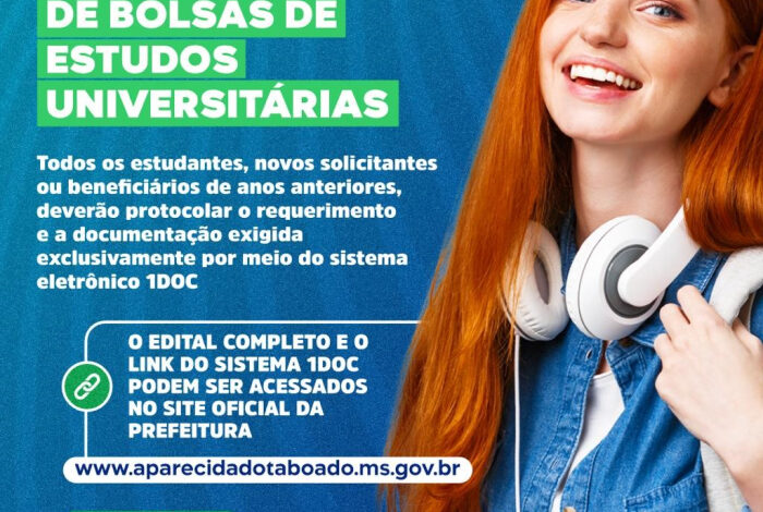Estudantes de Aparecida do Taboado ganharam mais alguns dias para garantir um alívio no bolso em 2026. A Prefeitura anunciou a reabertura do prazo para a Bolsa Municipal de Ensino, que oferece desconto de 20% nas mensalidades de cursos superiores e profissionalizantes.