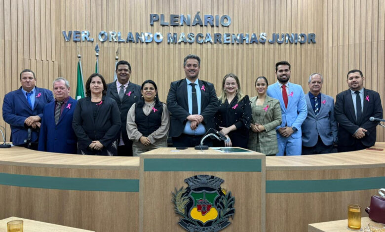 Durante as sessões, os vereadores utilizam laços e adereços alusivos à campanha para chamar a atenção da população para a importância da prevenção, diagnóstico precoce e tratamento do câncer de mama.