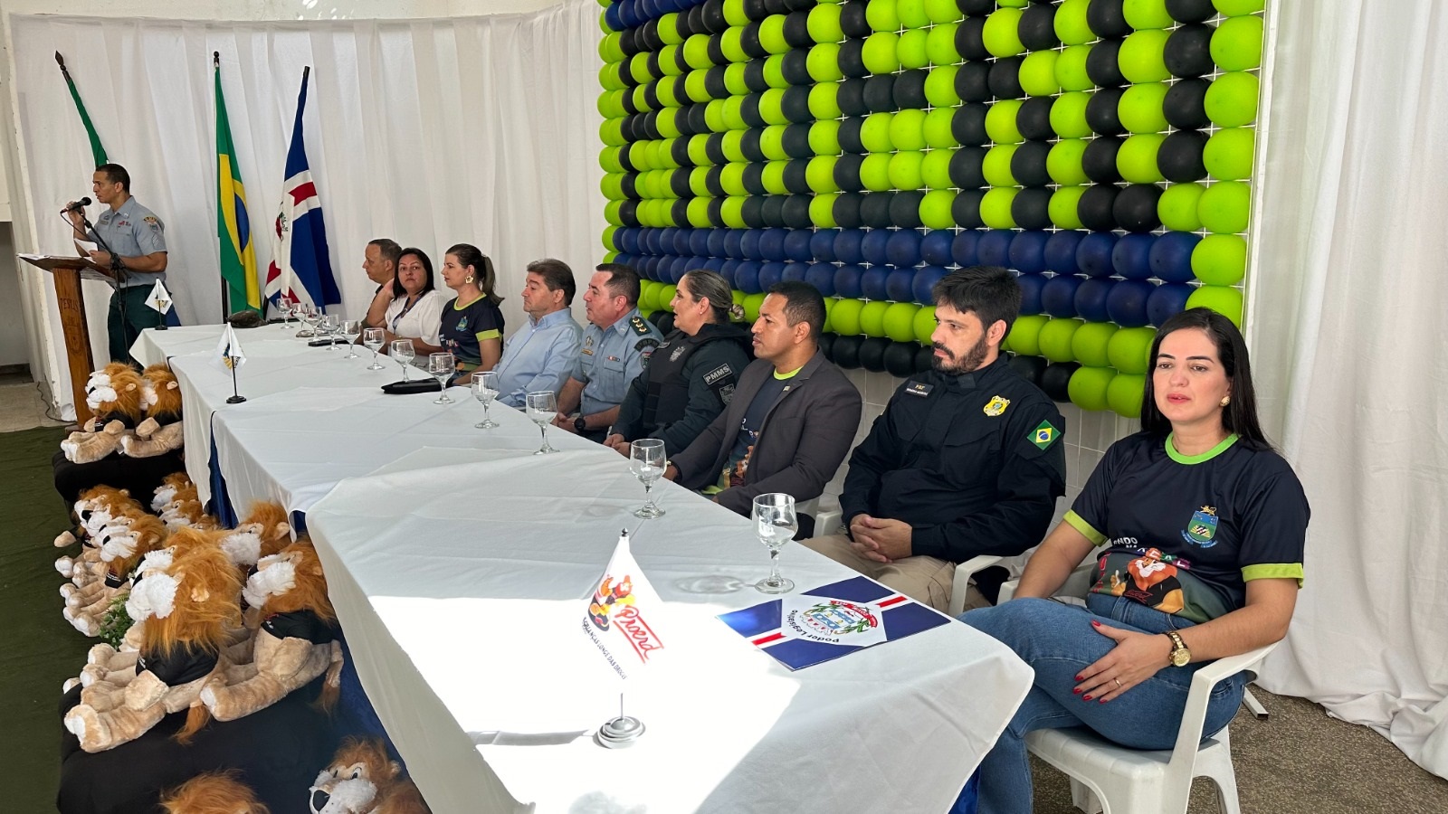 Diversas autoridades locais e amigos Proerd participaram do evento. O Prefeito Municipal, Dr. Edilson Magro, o Presidente da Câmara Municipal, Vereador Ademir Peteca, e a Vereadora Adriana Nabhan, juntamente com a Secretária Municipal de Educação, Professora Michelle Proença, reforçaram o compromisso da gestão municipal com a educação e a segurança.