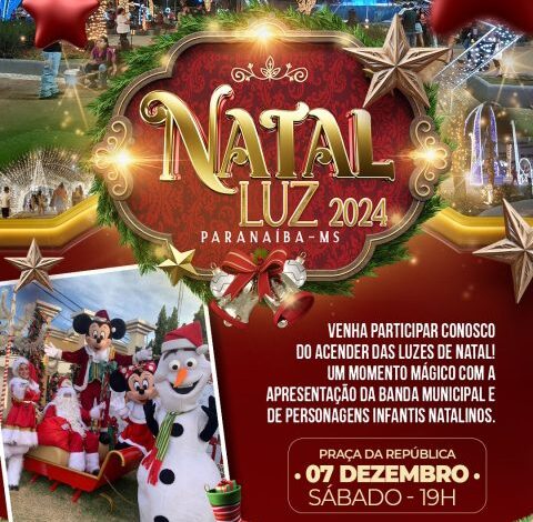 A Prefeitura de Paranaíba, por meio da Secretaria Municipal de Cultura, convida para o acender das luzes do Natal Luz 2024, neste sábado (7), a partir das 19h.