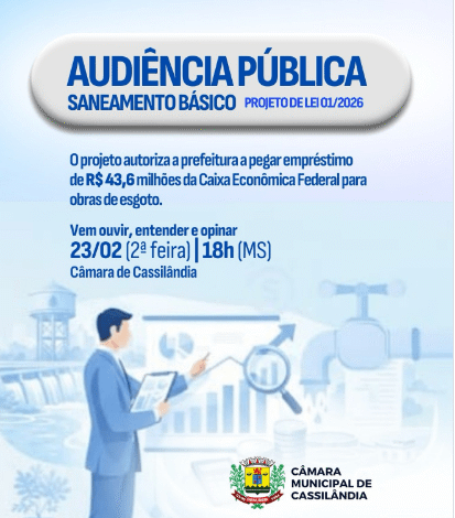 Prefeitura de Cassilândia quer empréstimo de R$ 43,6 milhões para saneamento e Câmara convoca audiência pública