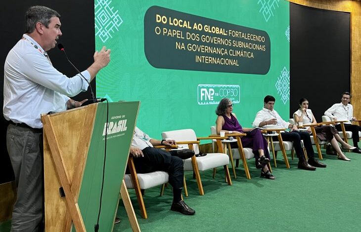 “Nunca entendemos que fosse um paradoxo o crescimento, o desenvolvimento e a manutenção de atividades de baixo carbono, a preservação da nossa biodiversidade”, frisa Riedel durante sua participação em painel realizado no espaço da FNP (Frente Nacional dos Prefeitos), son o tema ‘Fortalecendo o papel dos governos subnacionais na governança climática internacional’. Horas antes, Riedel já tinha participado do Café na Amazônia – Encontro de Governadores na COP30, promovido pelo governo paraense, anfitrião da Conferência.