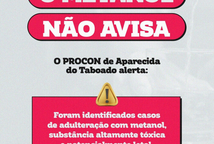 O PROCON de Aparecida do Taboado (PROCON APT) emitiu uma nota de orientação, com base em alerta da SENACON, para orientar fornecedores e consumidores sobre a prevenção de riscos à saúde pública, especialmente a adulteração de bebidas alcoólicas com metanol, uma substância tóxica e letal.