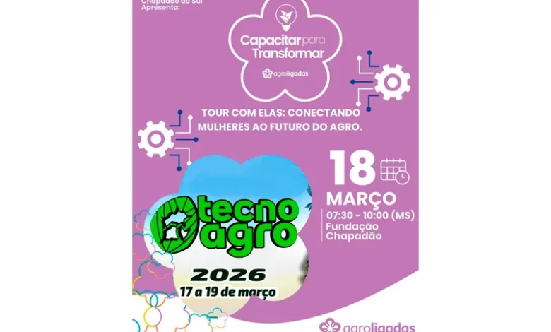 O movimento Agroligadas, por meio de seu núcleo em Chapadão do Sul, celebrará seu primeiro ano de atuação com uma iniciativa especial durante a TecnoAgro 2026. No dia 18 de março, a feira receberá o “Tour para Elas”, um evento desenhado para conectar mulheres que atuam direta ou indiretamente no setor produtivo.