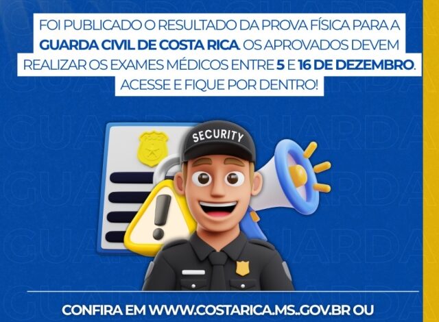 Os interessados podem acessar mais informações no Diário Oficial do Município no site oficial da Prefeitura de Costa Rica e da Fronte Concursos. Essa fase é decisiva para os participantes que almejam ingressar na Guarda Civil, que vai desempenhar um papel fundamental na segurança pública da região.