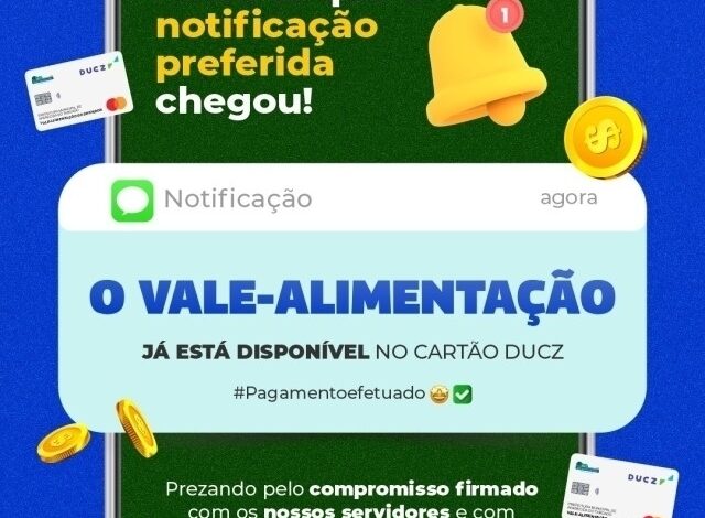 O Governo Municipal de Aparecida do Taboado liberou nesta sexta-feira, 5 de dezembro, o crédito do cartão alimentação (DUCZ) para todos os servidores públicos municipais. O valor liberado totaliza R$ 434.896,00 em benefícios, representando um importante reforço no orçamento familiar para o fim de semana.