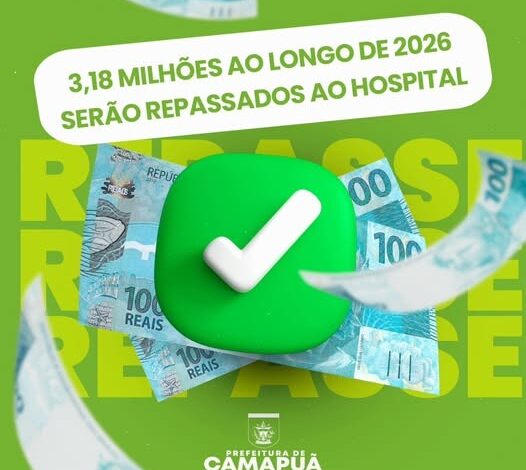 A Prefeitura de Camapuã formalizou um importante aporte financeiro para assegurar o funcionamento da saúde pública no município. Ao longo de 2026, serão repassados um total de R$ 3,18 milhões para a manutenção dos serviços hospitalares utilizados pela população.