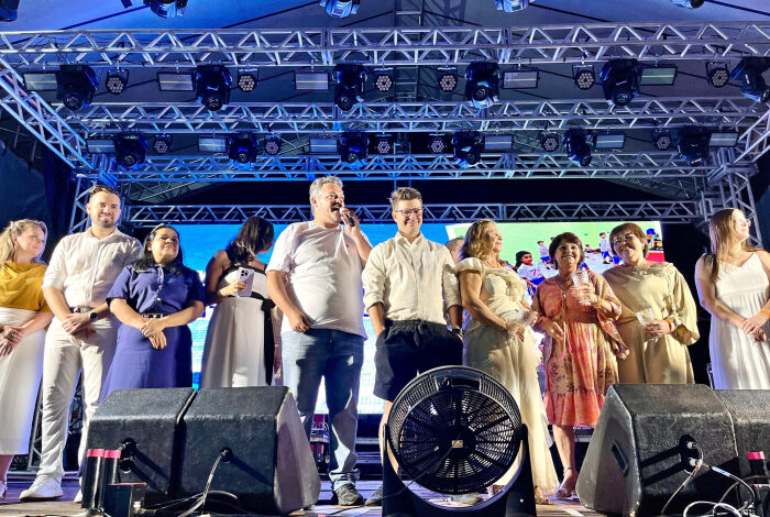 O prefeito José Natan, presente no evento ao lado da primeira-dama Verônica de Paula, subiu ao palco para celebrar junto à população e deixar sua mensagem de otimismo.