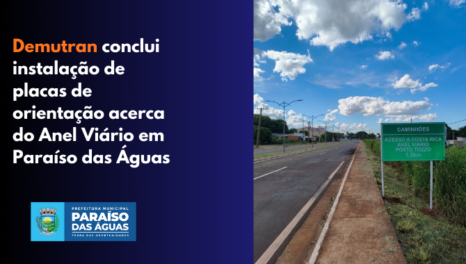 Sinalização Concluída: Demutran orienta rota pesada para o Anel Viário em Paraíso das Águas