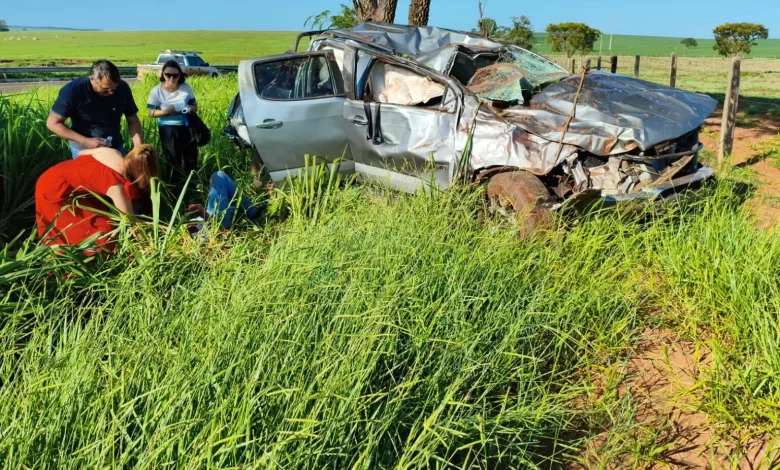 Susto na BR-060: Irmãos advogados, filhos de produtores de Bela Alvorada, ficam feridos em capotamento