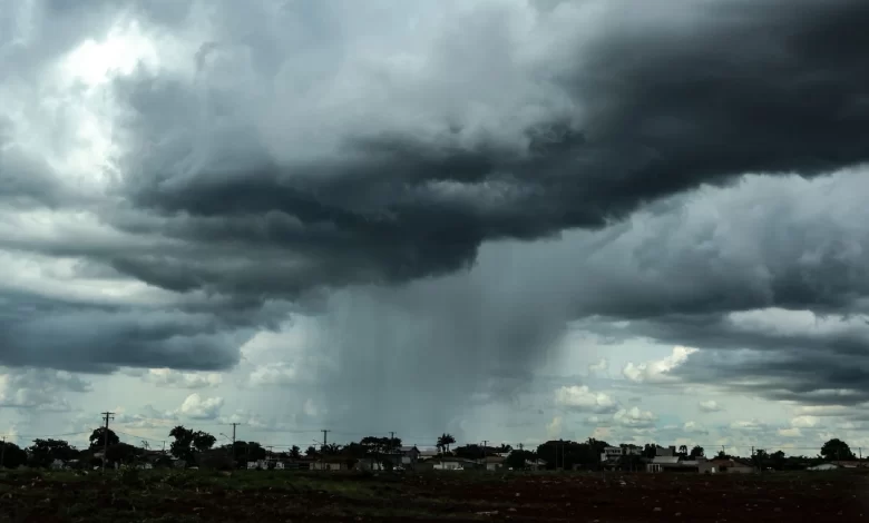 Em Campo Grande, o dia segue chuvoso, intercalando com momentos de sol entre nuvens e máxima de 26°C. A recomendação é evitar se abrigar debaixo de árvores durante as rajadas de vento e redobrar o cuidado nas estradas.