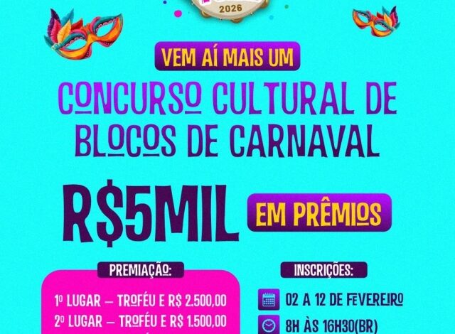 A iniciativa da Diretoria de Cultura vai distribuir um total de R$ 5.000,00 em prêmios para incentivar a criatividade e a organização dos foliões.